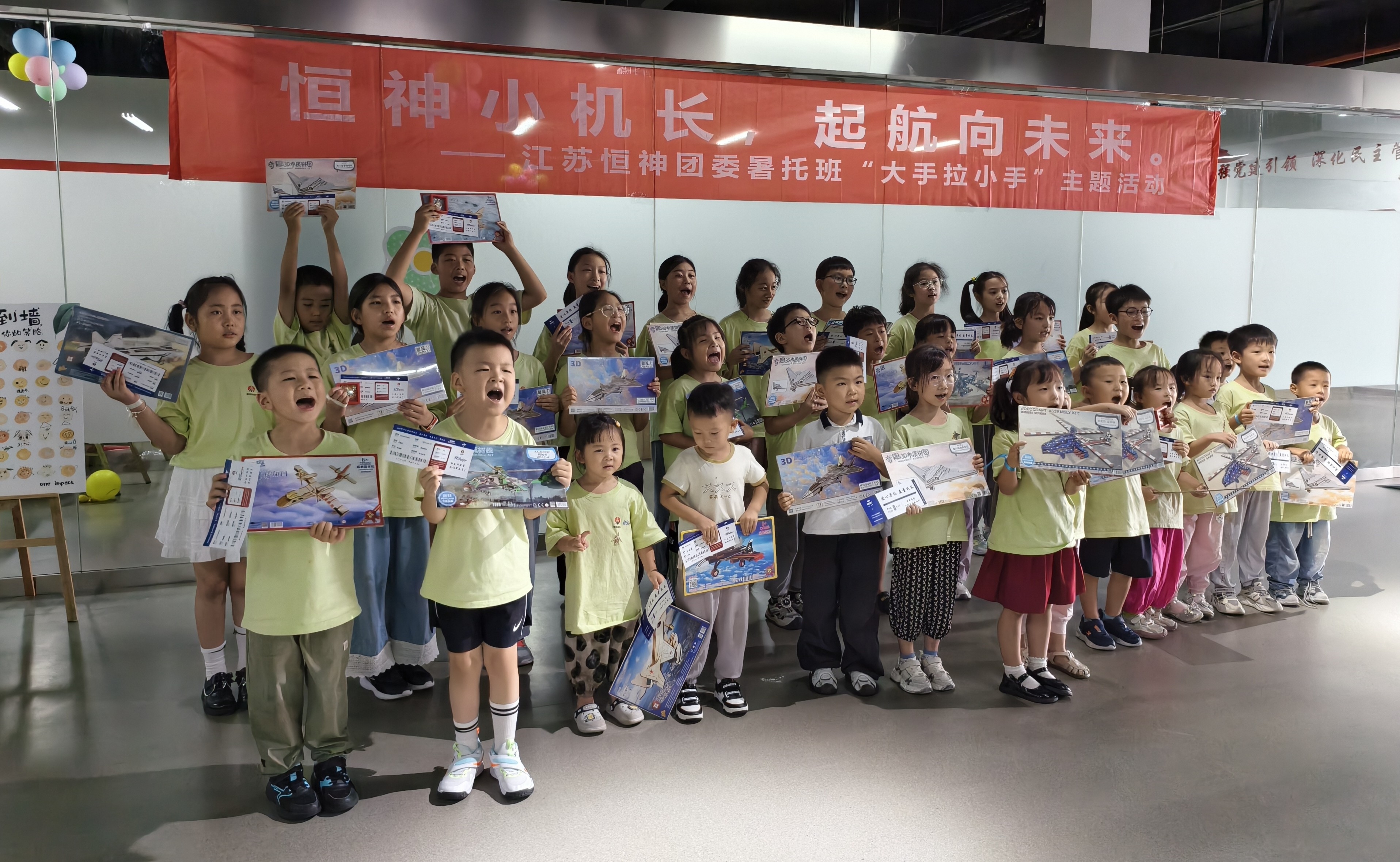 8月12日下午,恒神股份愛心暑托班的活動(dòng)場地變身歡樂航空港,約50名職工子女化身 “恒神小機(jī)長”,在團(tuán)委青年們的帶領(lǐng)和陪伴下,開啟了一場充滿歡笑與成長的航空主題奇妙之旅。這場以 “恒神小機(jī)長?起航向未來” 為主題的趣味游戲活動(dòng),讓孩子們在輕松愉快的游戲中收獲了知識(shí)、初步建立了團(tuán)隊(duì)互助協(xié)作的觀念。開場破冰:舞蹈牽情誼,小隊(duì)齊集結(jié)隨著歡快的音樂旋律響起,活動(dòng)正式拉開帷幕。5名團(tuán)委青年與孩子們手拉手圍成圈,跟著節(jié)奏蹦跳旋轉(zhuǎn),原本有些靦腆的小朋友們很快被活潑的氛圍感染,大廳里瞬間充滿了銀鈴般的笑聲。這場破冰舞蹈就像一根無形的線,迅速拉近了青年志愿者與孩子們的距離。在簡要的自我介紹后,大家通過抽取彩色手環(huán),分成了紅、黃、藍(lán)、綠、白五支小隊(duì),展開了一場場趣味比拼。趣味闖關(guān):航空主題游戲里的知識(shí)與協(xié)作折紙飛機(jī)環(huán)節(jié)迅速點(diǎn)燃了孩子們的激情。大家拿著 A4 紙,跟著領(lǐng)隊(duì)老師學(xué)習(xí)折疊技巧,有的還別出心裁地畫上笑臉和花紋。“三、二、一,起飛!” 當(dāng)數(shù)十架紙飛機(jī)穿過 “書架圓環(huán)” 時(shí),大廳里爆發(fā)出陣陣歡呼。“我是拼圖小能手” 環(huán)節(jié)堪稱對(duì) “速度與協(xié)作” 的考驗(yàn)。當(dāng)飛機(jī)拼圖被分發(fā)到各隊(duì)時(shí),孩子們立刻圍坐在一起,七手八腳地開始拼接。“這塊應(yīng)該在這里!”“不對(duì),看機(jī)翼的形狀!” 團(tuán)委志愿者們在旁耐心引導(dǎo),既不包辦代替,又及時(shí)給迷茫的小隊(duì)員們支招。最終,各支隊(duì)伍都順利完成了拼圖任務(wù)。“飛機(jī)連連看” 游戲成了記憶力大比拼。孩子們盯著倒扣的紙牌,時(shí)而蹙眉思考,時(shí)而拍手歡呼,團(tuán)委志愿者們則在一旁計(jì)時(shí)鼓勁、還要熱心的小朋友不時(shí)用掌聲鼓勵(lì)加油。最終,所有孩子都贏得了木制飛機(jī)模型拼圖,獲勝隊(duì)伍的小朋友還優(yōu)先挑選了心儀的款式。溫情收尾:徽章與機(jī)票見證成長,愛與理念扎根心間活動(dòng)尾聲,每位小飛行員都領(lǐng)到了閃亮的 “恒神小機(jī)長” 徽章,驕傲地別在胸前。當(dāng)印有每個(gè)孩子名字的 “結(jié)業(yè)機(jī)票” 被鄭重頒發(fā)時(shí),不少小朋友舉著機(jī)票和模型向志愿者們開心地道謝。本次活動(dòng)旨在讓職工子女在歡樂中感受航空精神,同時(shí)通過青年志愿者的陪伴,傳遞企業(yè)對(duì)員工家庭的關(guān)懷。這場持續(xù)兩小時(shí)的活動(dòng),像一根堅(jiān)韌的 “情感碳纖維”,將企業(yè)、家庭與孩子緊緊相連。恒神團(tuán)委的青年們用熱情與愛心,為孩子們的暑假添上了一抹明亮的色彩,也讓 “愛與未來一起飛” 的溫暖理念,深深扎根在每個(gè)人心中。